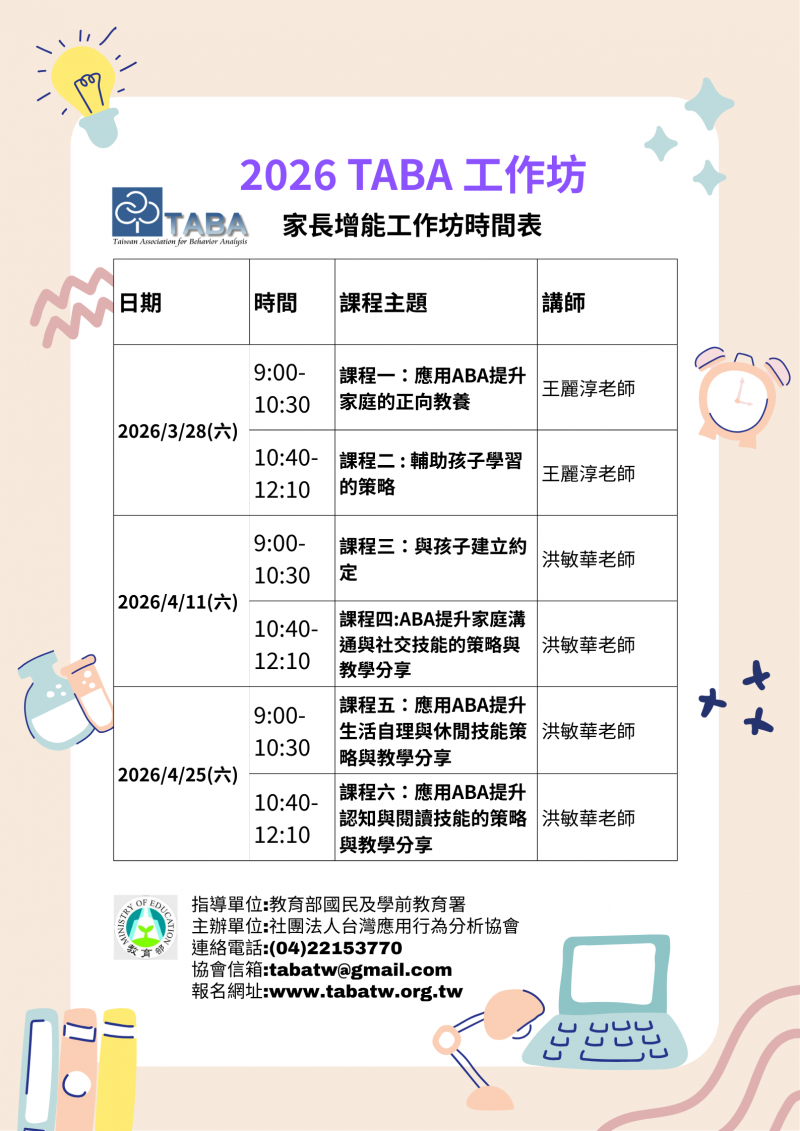 課程六:應用ABA提升認知與閱讀技能的策略與教學分享 - 詳細資訊