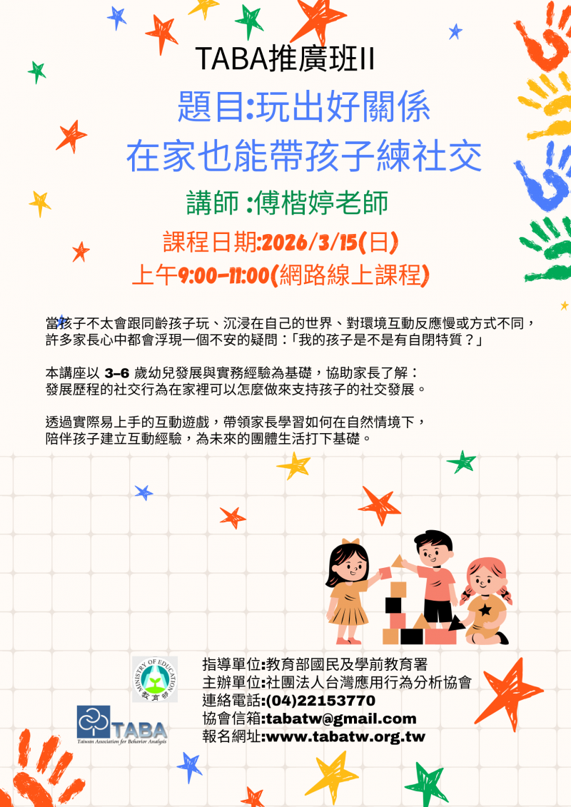 課程四 :ABA提升家庭溝通與社交技能的策略與教學分享